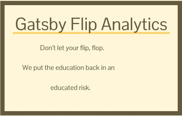 If you have dreamed of flipping a home but the risk of a flop has stopped you, Gatsby’s Flip Analytics is the answer for the novice or the pro.